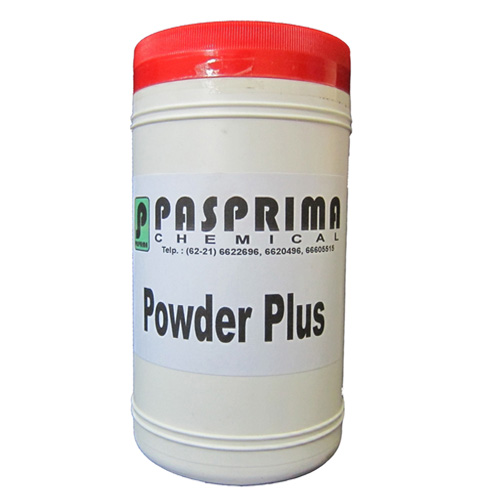 2. Taburkan bubuk Powder Plus secukupnya pada permukaan material atau totolkan bubuk pembersih tersebut pada alat bantu, atau juga dapat dicampurkan dengan air dalam suatu tempat dengan perbandingan 1 : 1.